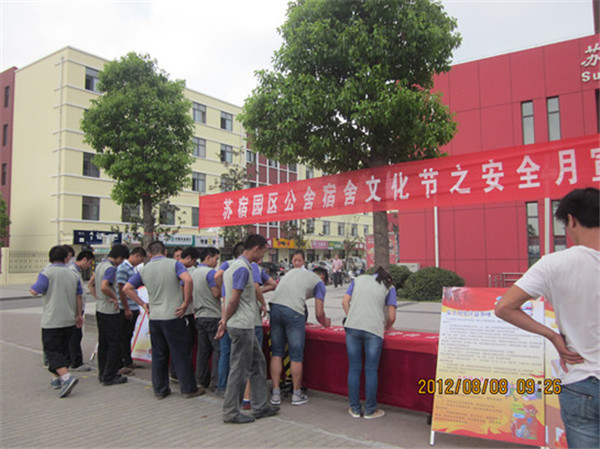 8月8日上午,在園區(qū)人才市場(chǎng)廣場(chǎng)開展“園區(qū)公舍宿舍文化節(jié)”活動(dòng),本次活動(dòng)通過展板、簽名等形式向公舍廣大住宿職工宣講消防安全及安全用電知識(shí),此次活動(dòng)為即將開展的消防演練奠定了基礎(chǔ)。
