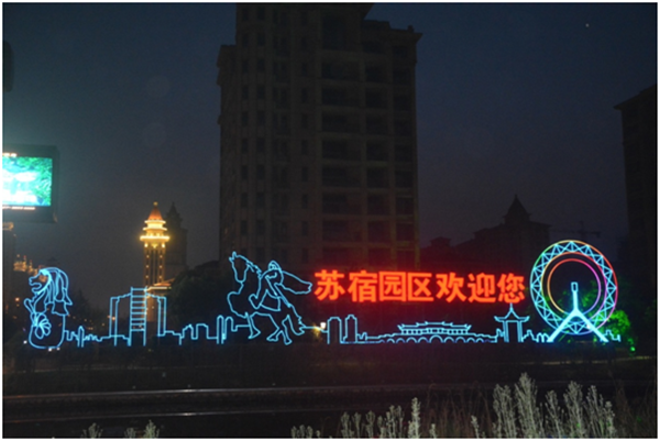 夜景亮化讓蘇宿園區(qū)流光溢彩