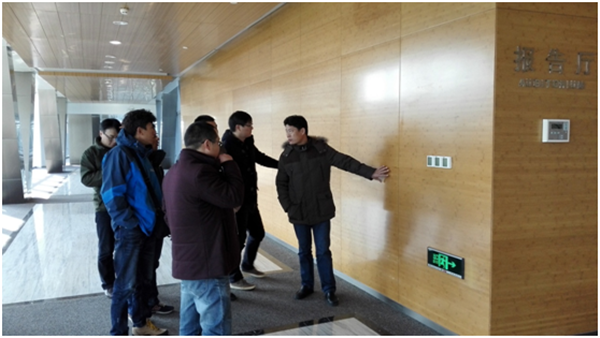 劉建華向考察人員詳細介紹了綠化工程、幕墻工程、木飾面裝修及吊頂工程等施工要點,并結(jié)合公司部分代建項目,系統(tǒng)分析,指出不足。他表示,建筑技術(shù)發(fā)展日新月異,工程從業(yè)人員必須不斷加強學(xué)習(xí)、總結(jié)經(jīng)驗,才能不斷提高工程管理水平。