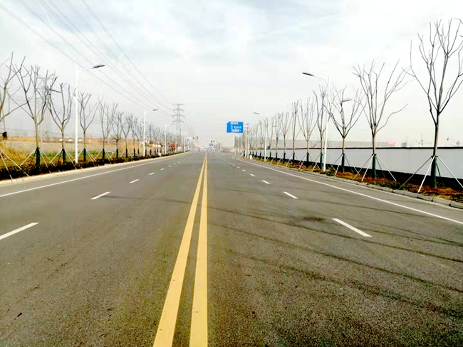 2019年工業(yè)區(qū)市政道路景觀綠化工程主要分為兩個標(biāo)段實施,實施范圍為古城路(莫干山大道—天柱山路)北側(cè)15米綠化帶,天柱山路(古城路—清水河)兩側(cè)人行道綠化帶和莫干山大道(青海湖西路—古城路)兩側(cè)綠化帶及人行道,總綠化面積約35000平方米,工程總投資約868萬元,主要種植為櫸樹、雪松、銀杏、欒樹、女貞、日本晚櫻、紅梅、垂絲海棠等喬灌木及紅葉石楠、金森女貞、夾竹桃、海桐等常綠灌木和金邊麥冬及草坪等地被類植物。
