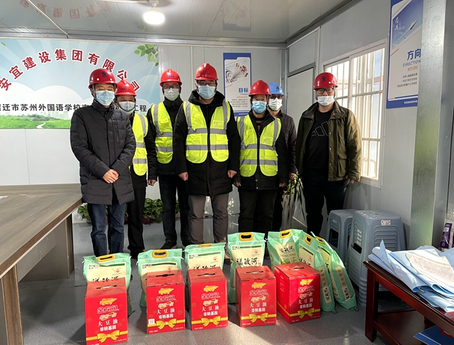 檢查后,在宿蘇外南北校區(qū)擴建項目施工現(xiàn)場,房建工程部向堅守在一線的工人送去了食用油和大米,叮囑大家注意春節(jié)期間安全和疫情防控并表達了新春祝福,祝愿大家過一個平安祥和的春節(jié)。