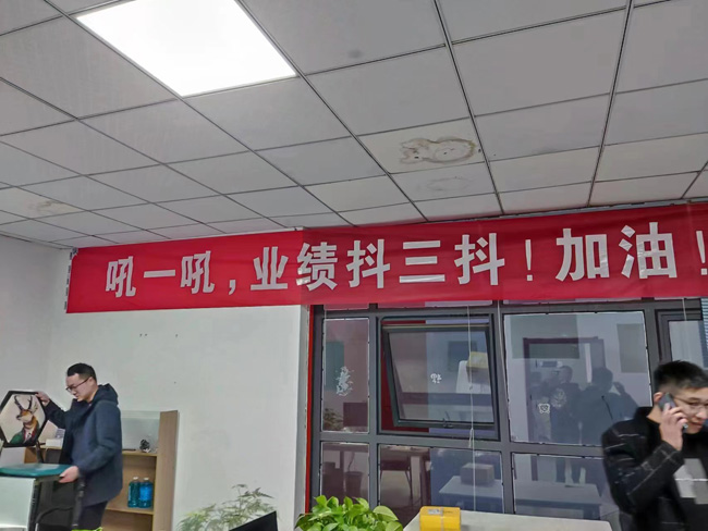 走進(jìn)騰輝家具,一條催人奮進(jìn)的條幅“將來的你一定會(huì)感激現(xiàn)在拼搏的你”映入眼簾,四通科技的“不吃飯,不睡覺,敲著鍵盤數(shù)鈔票”條幅簡單明了催人沖業(yè)績,還有的拉出 “吼一吼,業(yè)績抖三抖!” 這些熱血沸騰的條幅巧妙打造“備戰(zhàn)”主題,為“雙11”預(yù)售烘托濃厚氛圍。