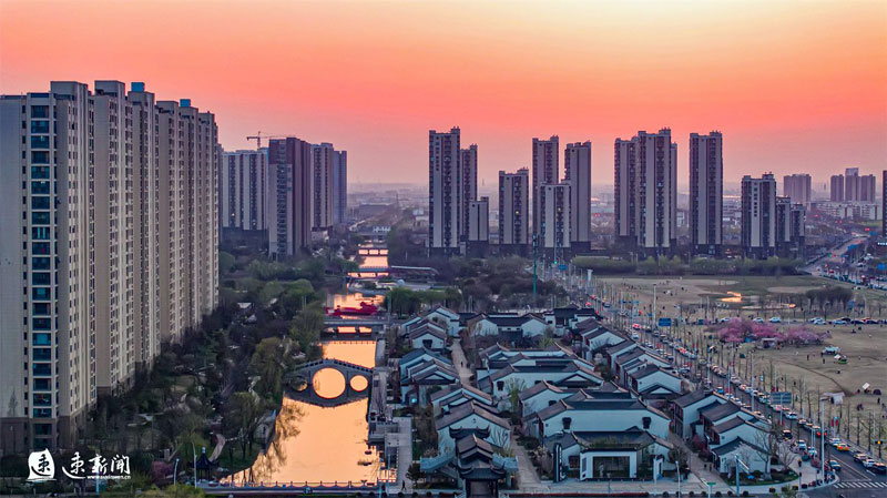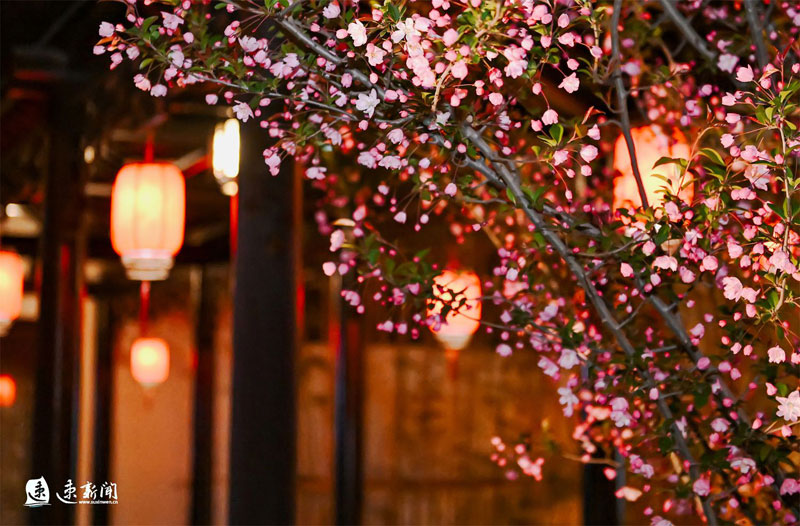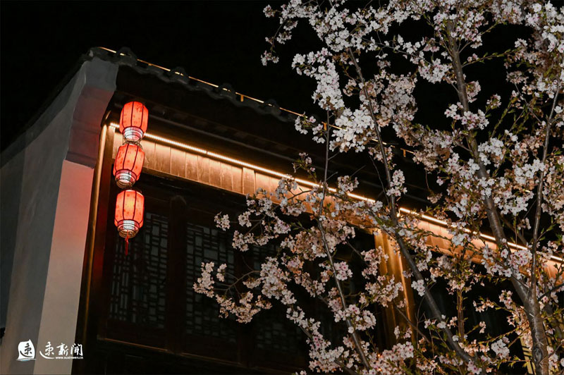3月31日,蘇州街盛開的櫻花、海棠、玉蘭與蘇式街區(qū)相互映襯,美不勝收。