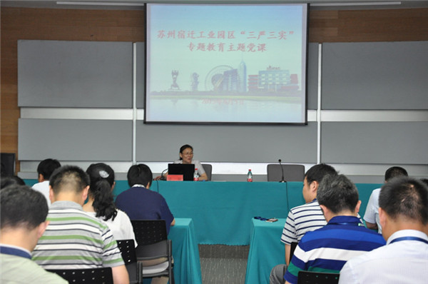 8月5日下午,園區(qū)工委副書記、管委會(huì)副主任駱敏為園區(qū)機(jī)關(guān)事業(yè)單位、國(guó)資國(guó)企黨員講了一堂“三嚴(yán)三實(shí)”專題黨課。