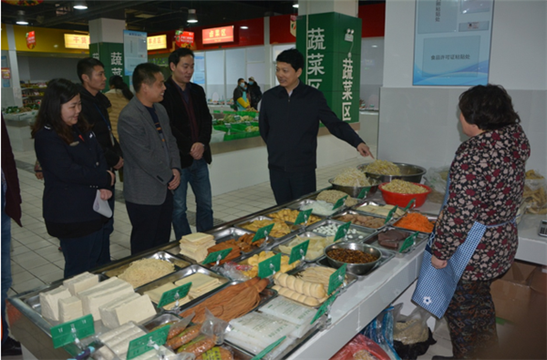 戈亮一行現(xiàn)場聽取了菜場負責人開業(yè)準備工作情況匯報,實地察看了生鮮菜場規(guī)劃布局、開業(yè)方案、食品安全臺賬、食品安全檢測室設備,與各經營戶親切交談。