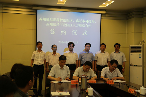 7月21日下午,蘇州獨(dú)墅湖科教創(chuàng)新區(qū)管委會、宿遷市科學(xué)技術(shù)局、蘇州宿遷工業(yè)園區(qū)管委會三方戰(zhàn)略合作協(xié)議簽約儀式在宿遷舉行。根據(jù)協(xié)議,三方將在科技資源轉(zhuǎn)移、科技平臺建設(shè)以及科技環(huán)境優(yōu)化等方面推進(jìn)合作。這是蘇宿兩地合作內(nèi)涵逐步深化、合作領(lǐng)域不斷拓寬、合作水平全面提升的重要體現(xiàn),更是深入貫徹落實(shí)省委、省政府部署的重要舉措。市委副書記、市長王天琦,副市長、蘇宿工業(yè)園區(qū)黨工委書記、管委會主任方文浜,市政府秘書長章其波見證簽約。
